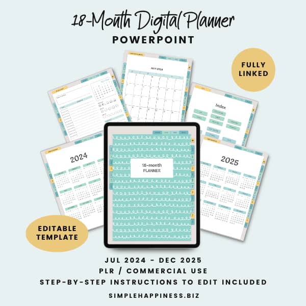 Customers can use the planner themselves but it comes with commercial rights, an editable template, and a 42-page how-to-edit instruction booklet so they can either sell the planner as is or create their own version for sale.