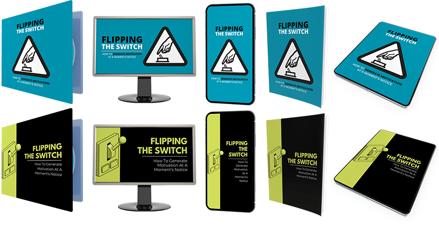 Flipping The Switch – How To Generate Motivation At A Moment’s Notice. This all-inclusive package contains a Pre-Written eBook and Workbook along with a Pre-Recorded Audiobook so that you can start selling this as your own digital product right away!