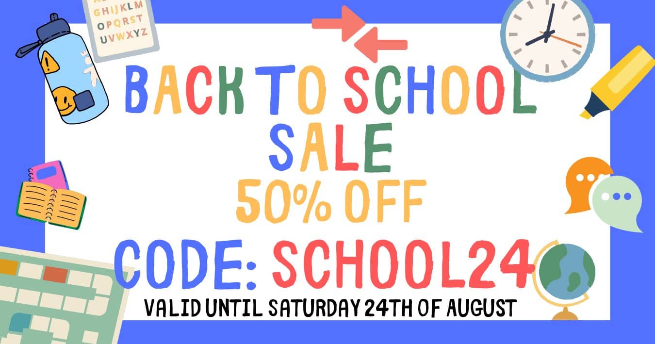 USE THE CODE: SCHOOL24 Valid until Saturday, August 24th