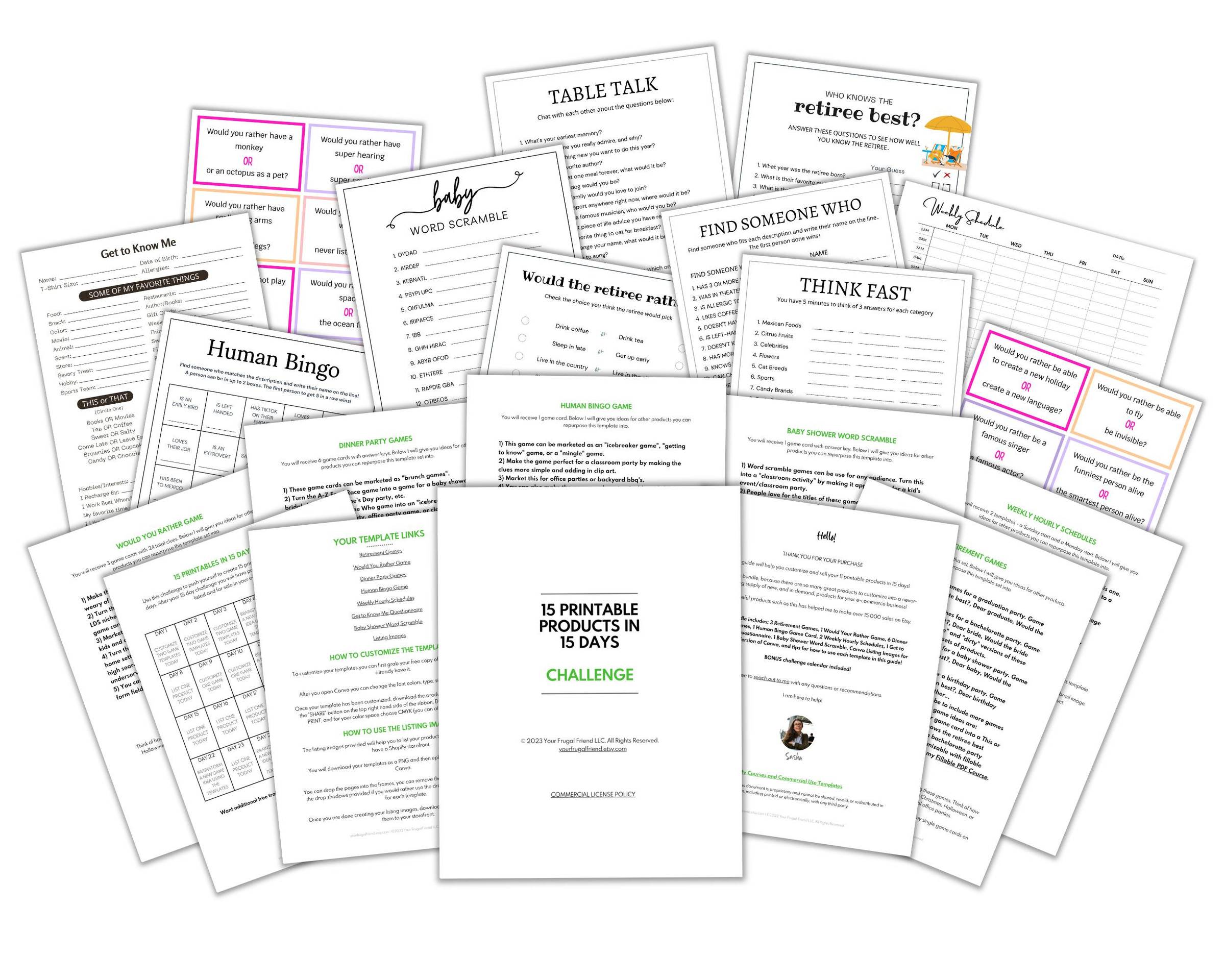This commercial use template pack will help you create 15 products in 15 days to sell in your e-commerce shop, your email list, or blog audience.