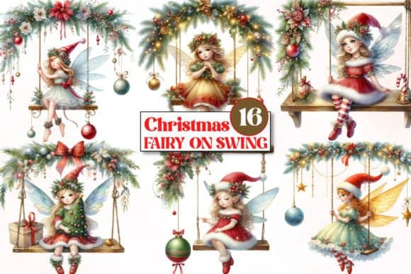 FREE – Christmas Fairy on Swing Sublimation PNG