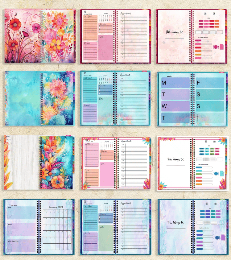 • BONUS: 4 “Desktop” Backgrounds for Digital Planners + 4 Interior Covers – Just like a REAL Planner! (not shown)