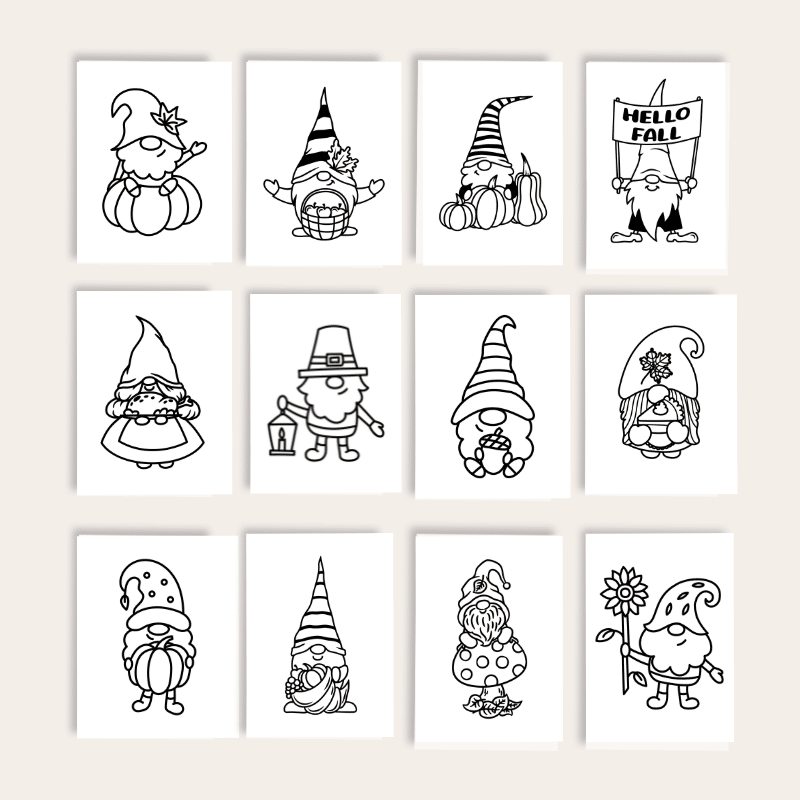 You will receive a 40-page Fall Gnomes Coloring and Game Pack!