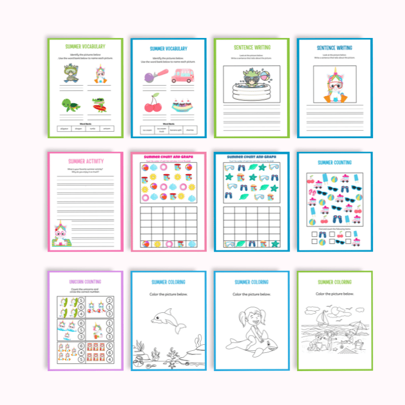 - Summer, Unicorn, and Ice Cream Counting Exercises (3)