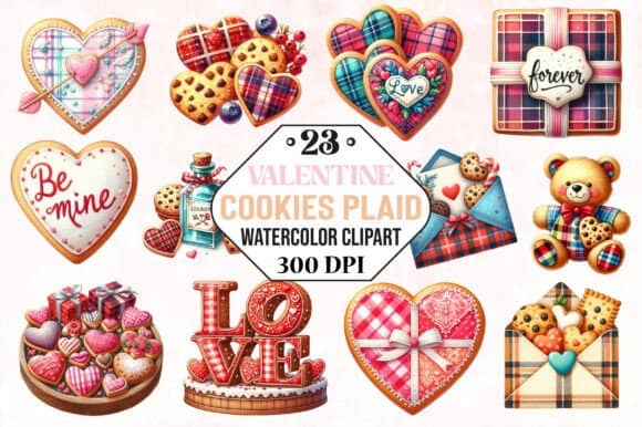 βFREE – Valentine Cookies Plaid Clipart Bundleβ