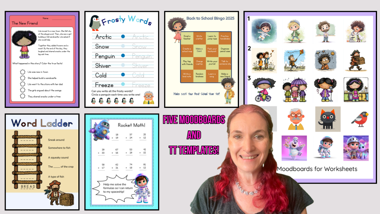 FREE! 5 Moodboard Refs – Characters for Kids Worksheets & KDP Books. Plus PDF guide and TT file with worksheet templates for Tangent Templates