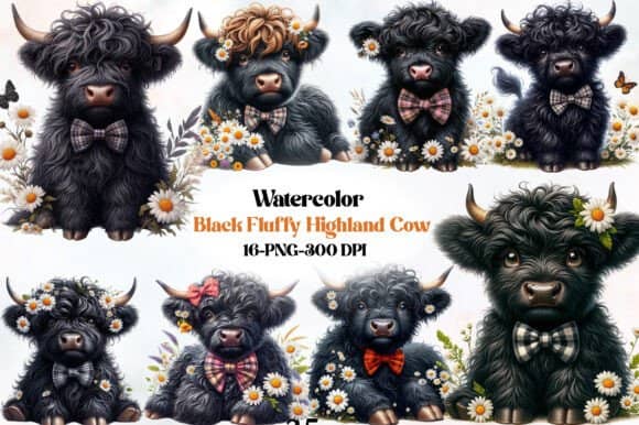 FREE – Cute Black Fluffy Highland Cow Clipart