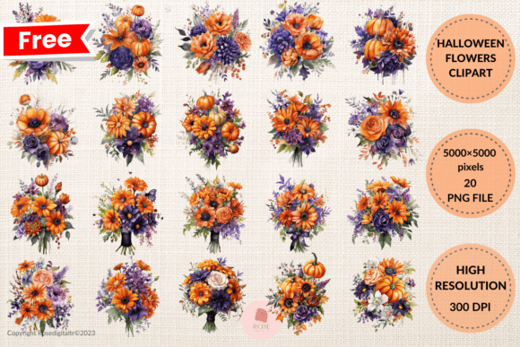 FREE – Halloween Flowers Clipart Bundle 4