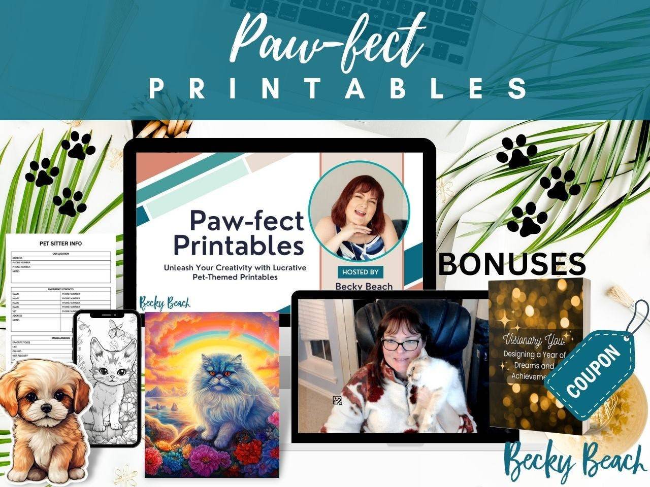 Unleash the power of pet-themed printables by signing up for Paw-fect Printables. This live actionable workshop shows you how to create and sell amazing pet-themed printables that have high monthly search volume. Learn how to create these printables using Canva and AI tools quick and easy. Keyword research and social media promotion are also covered during the workshop. Included are several bonuses! You will be purring with delight at all the paw-fits you will get!
