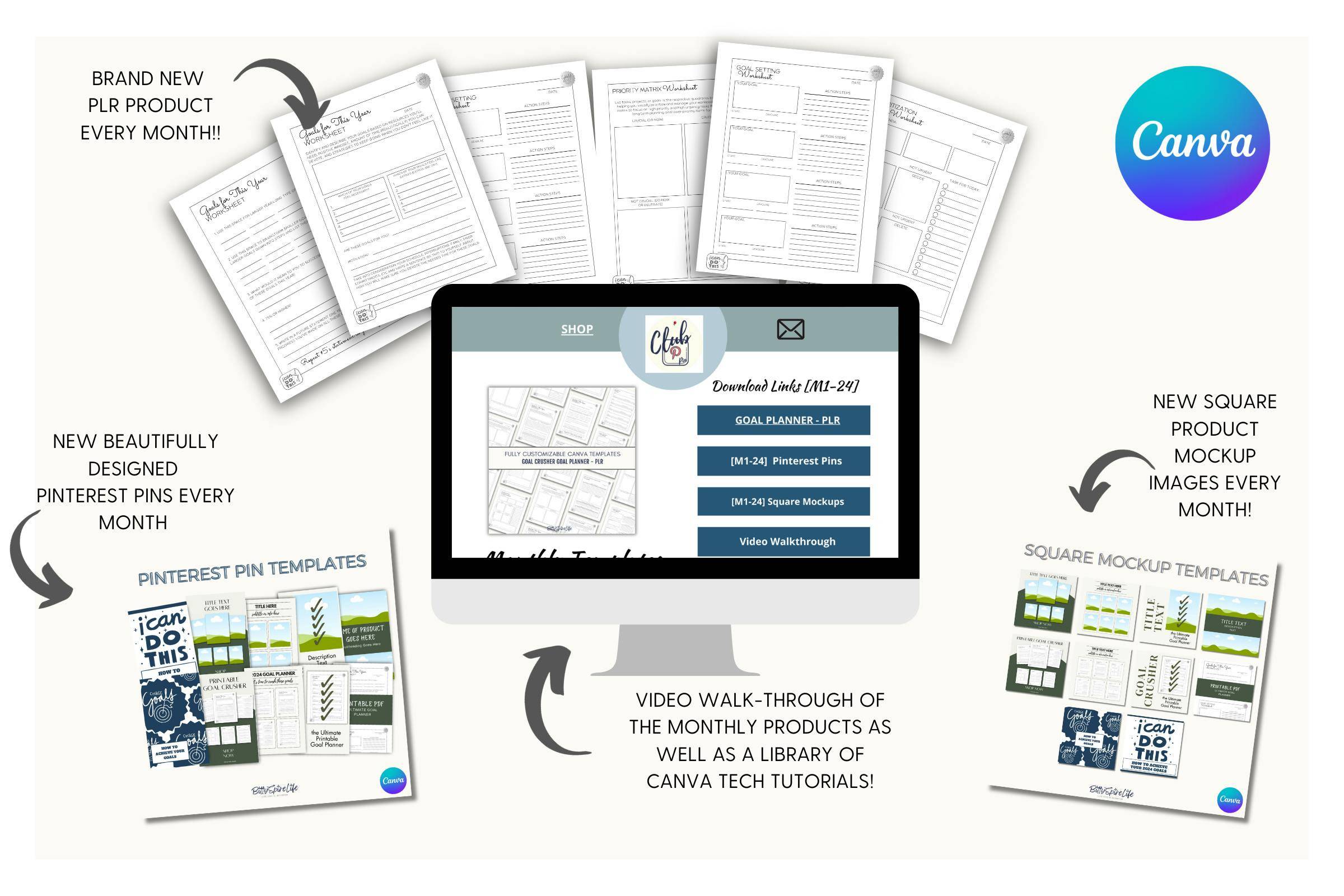 This months PLR with extended rights planner. The Ultimate Goal Planner in digital and printable format with lots of extra graphic to create multiple variations.
