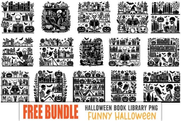 โFREE – Funny Halloween Bookshelf PNG Bundleโ