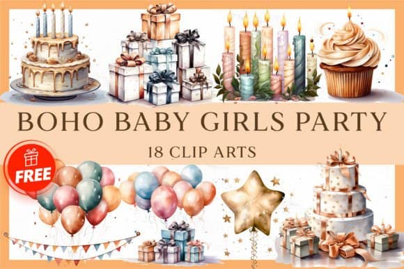โFREE – Boho Baby Girl Party Sublimation Clipartโ