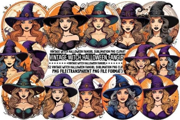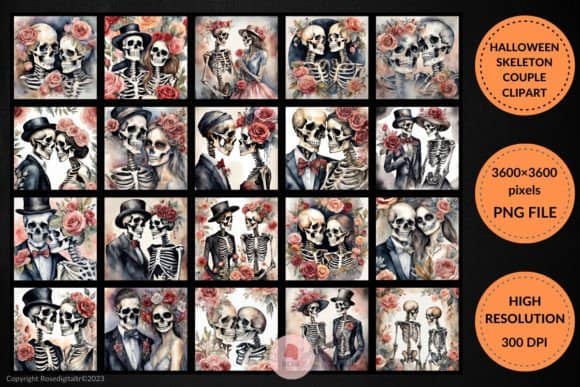Here’s a couple of Halloween FREEBIES – FREE – Vintage Witch Halloween Fangirl PNG and FREE – Halloween Skeleton Couple Clipart 21.