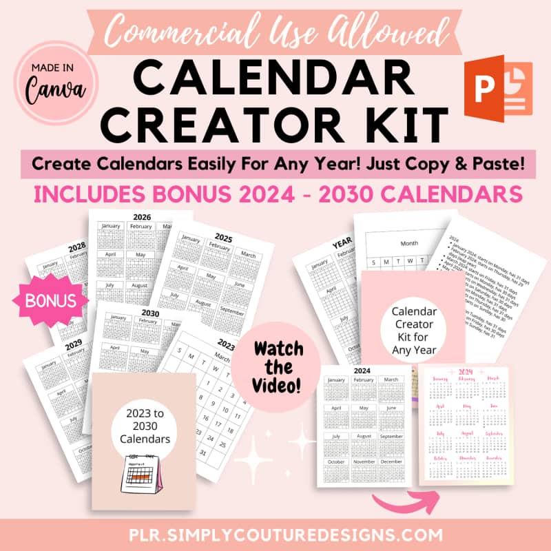 50% Off Calendar Creator Kit + 2024-2030 Calendar Canva Templates