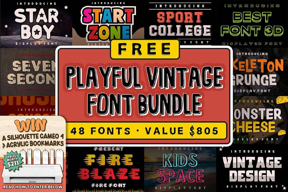 Look toward the bottom of this email for the FREE – Playful Vintage Font Bundle and your chance to WIN a Silhouette Cameo 4 & Acrylic Bookmarks worth $211!