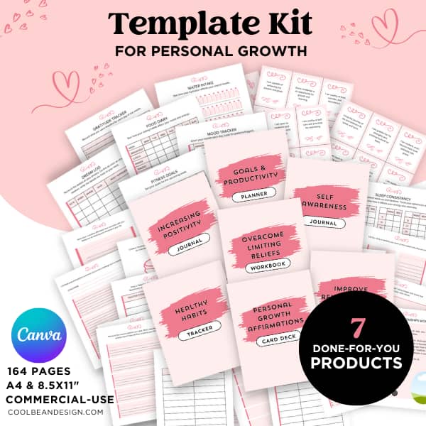 Save hours of hard work with Cool Bean Design’s done-for-you Canva templates in the popular self-help niche. Perfect for coaches, bloggers, or any entrepreneur who wants to offer impactful resources.