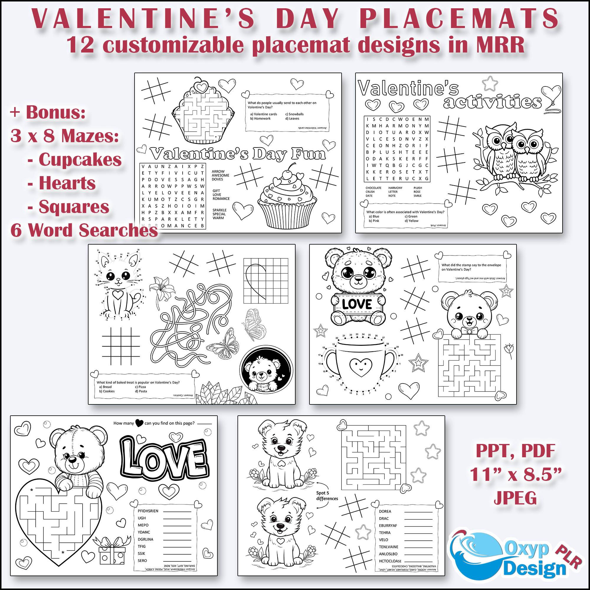 Valentine’s Day Placemats – 12 Customizable Placemat designs in MRR