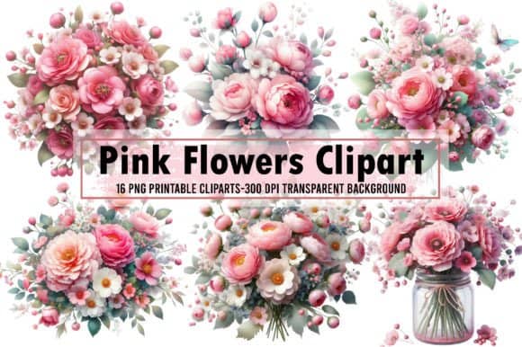 ​FREE – Pink Flowers Watercolor Clipart Bundle​