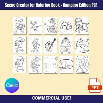 - Compass, guitars, bicycle, and much more to create the camping coloring book you’ve always wanted to sell!