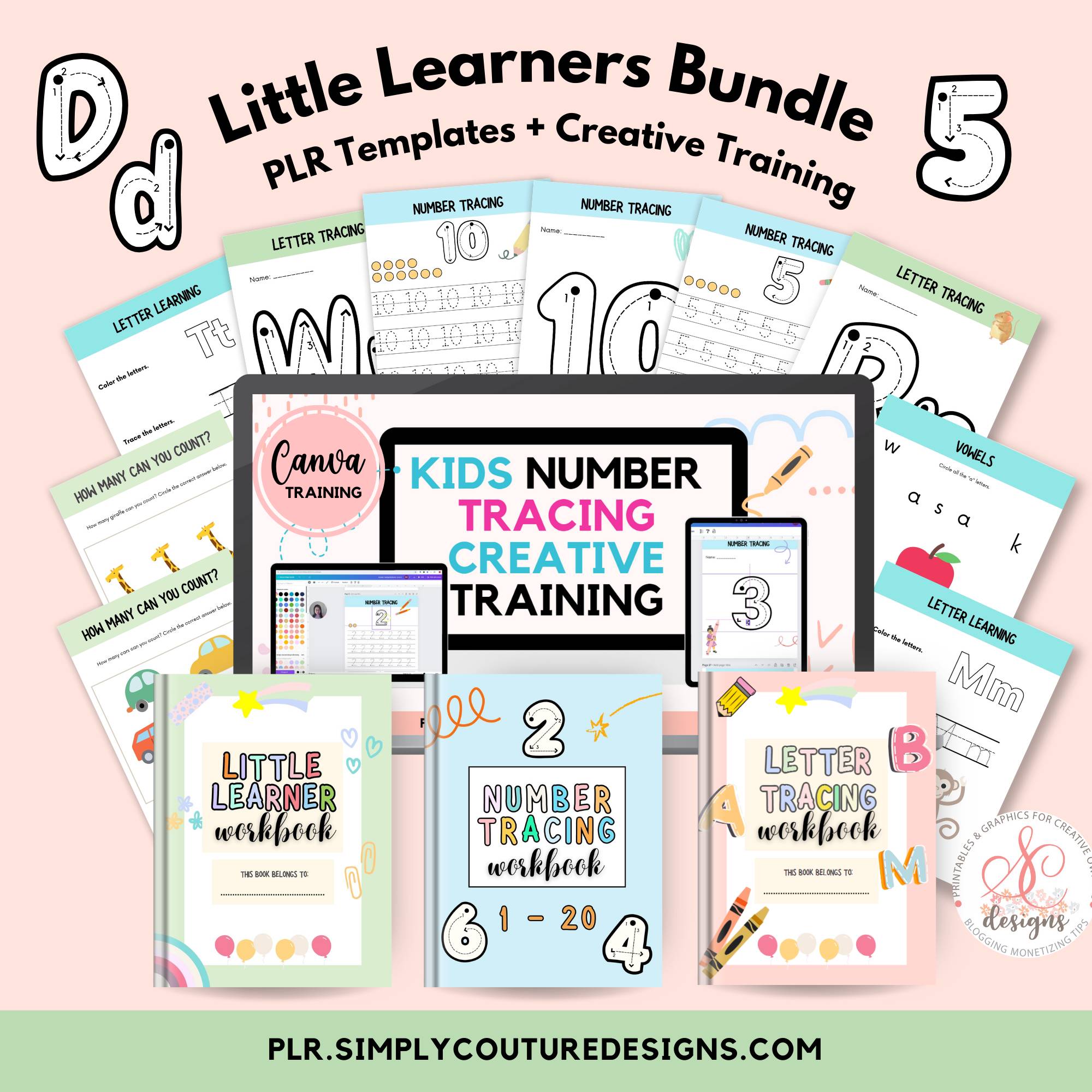 Unlock the potential of the early education market with the Little Learners Creative Bundle. This comprehensive bundle includes three high-quality little learner workbooks (Number Tracing, Letter Tracing and Little Learner Activities), all with PLR rights, designed to captivate young minds and make learning fun and engaging in fully editable Canva Templates.