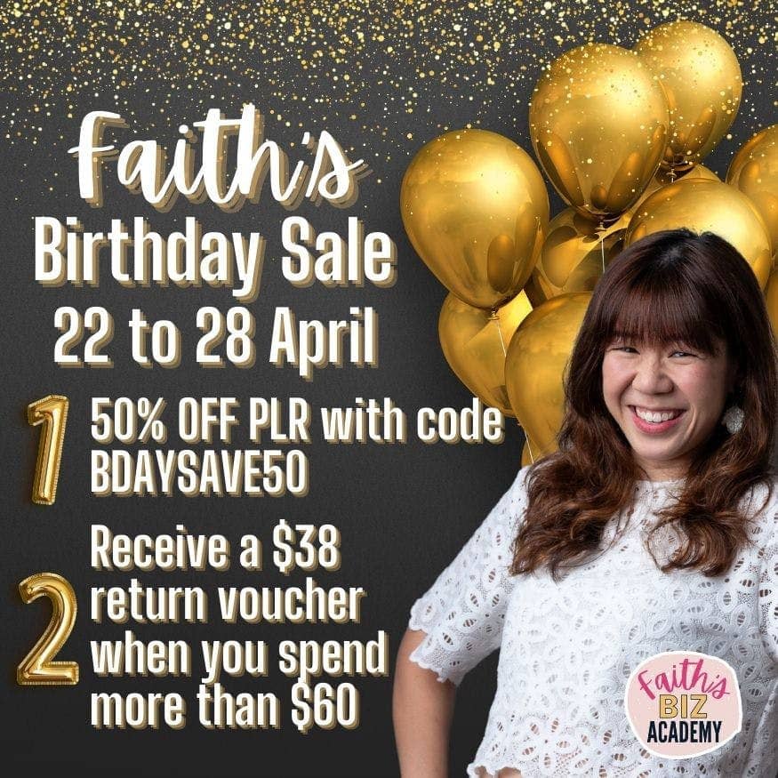 Faith’s Birthday Sale: 50% OFF ALL PLR PRODUCTS AND CUSTOMIZATION TRAININGS