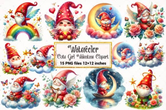 βFREE – Watercolor Valentines Girl Gnome Clipartβ