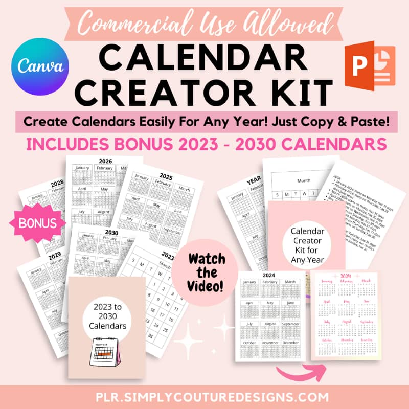 Calendar Creator Kit + 2023-2030 Calendar Canva Templates