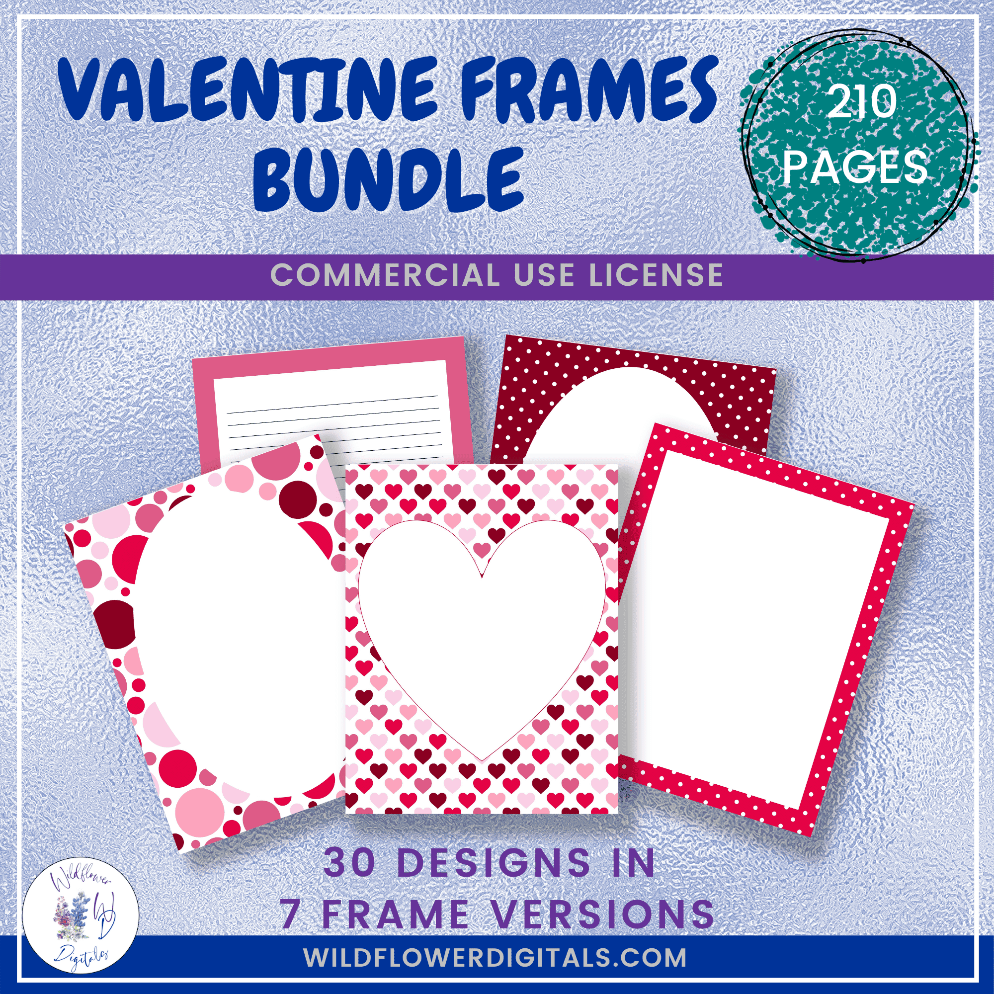 The Valentine Frames Bundle is a package of red- and pink-shaded designs that comes with 210 total frames — 30 designs, 7 frame styles — that can be used with journals, planners, calendars, and more.