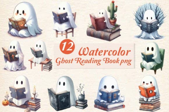 FREE – Ghost Reading Book Sublimation Clipart