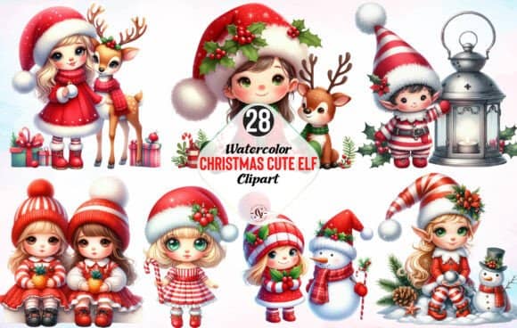 FREE – Watercolor Christmas Cute Elf Clipart​