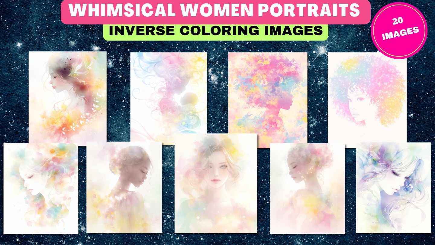 FREE – Whimsical Women Portraits – Inverse Coloring Images