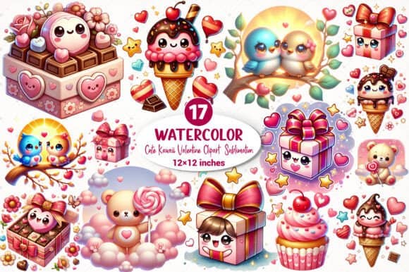 FREE – Cute Kawaii Valentine Clipart Bundle
