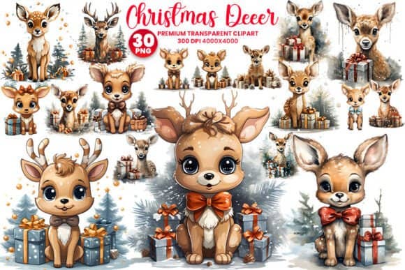 FREE – Happy Christmas Deer Clipart PNG Bundle