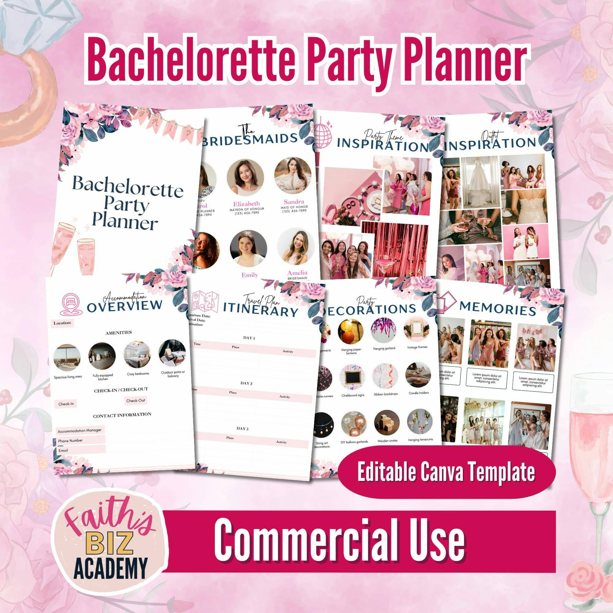 Make the bride-to-beβs last fling before the ring unforgettable with our comprehensive 22-page Bachelorette Party Planner Canva templates. This will be a great evergreen product to add to your store, and a party planner thatβs fun and magical for its users!