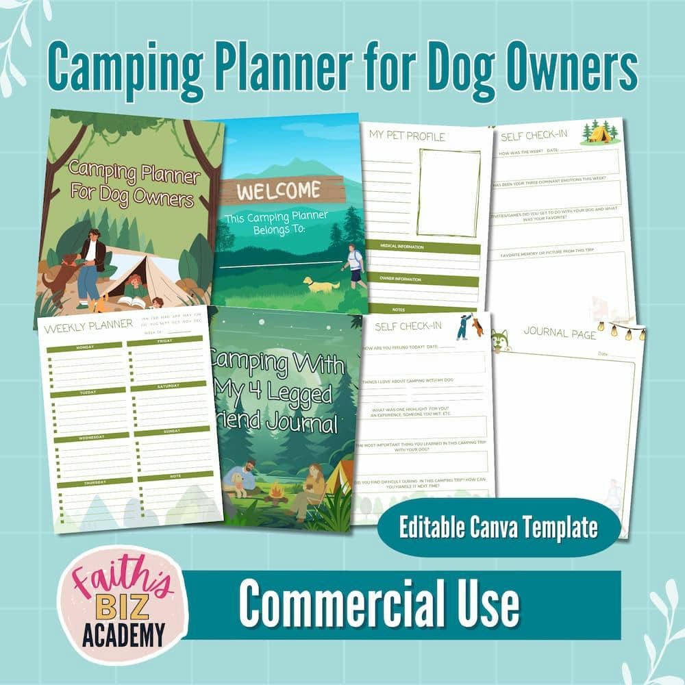 This detailed 39-page Camping Planner Canva template is specially designed for dog owners to make packing and planning for a camping trip with their four-legged friend a breeze. There are also journal pages included to help the owner build a beautiful keepsake for the memorable experience.