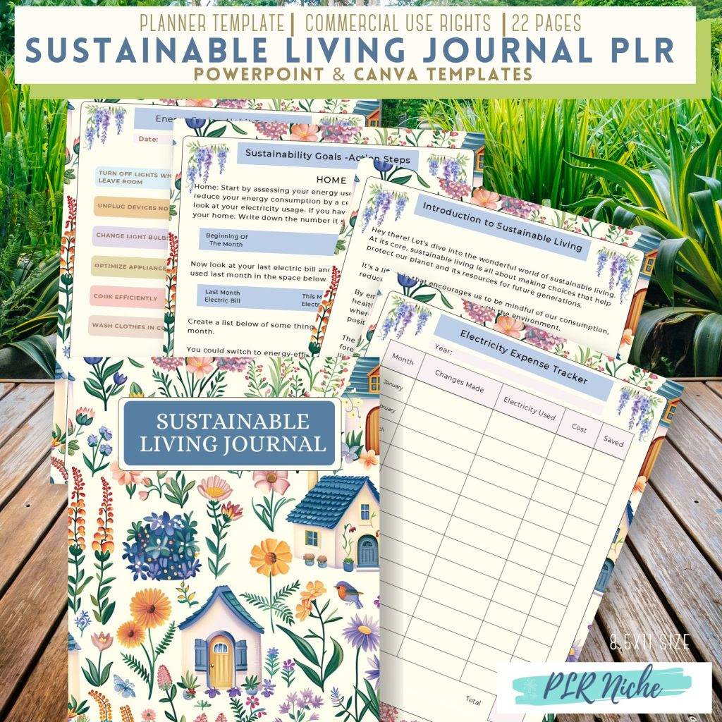 Introducing the ultimate 22-page Sustainable Living Journal PLR, designed to help record a persons progress of living a healthy, cleaner life for themselves and the planet.