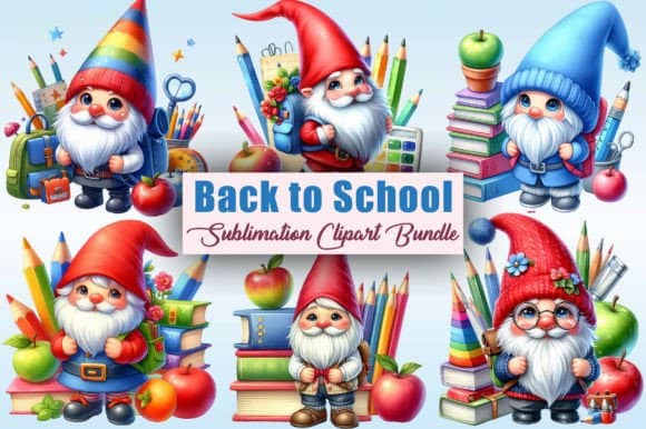 FREE – School Cute Gnome Sublimation Clipart