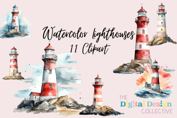 FREE – Watercolor Lighthouses Clipart Bundle