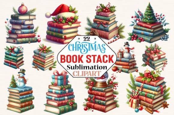 ​FREE – Christmas Book Stack Clipart​