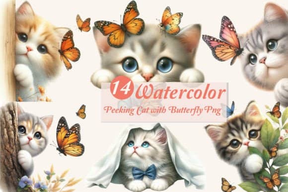 FREE – Peeking Cat with Butterfly Clipart PNG