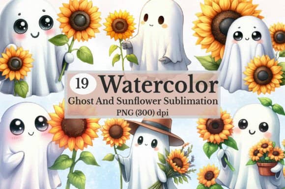 FREE – Cute Ghost and Sunflower Clipart