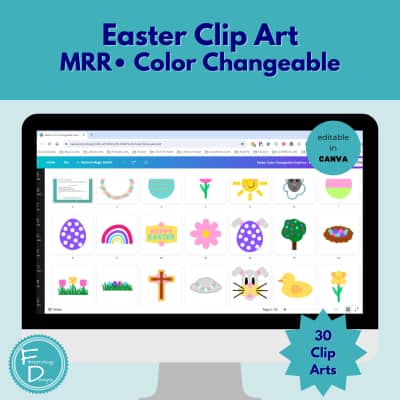 - 30 different Easter-themed graphics that are color changeable in Canva (3,000 px x 3,000 px)