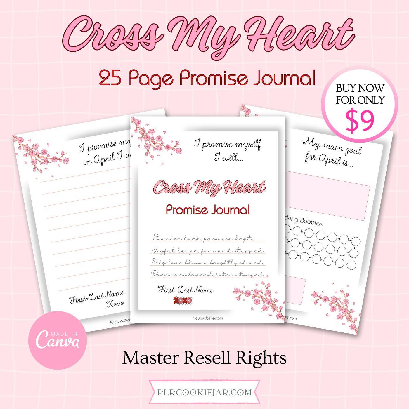 Use it yourself, and encourage your audience to embrace the challenge and grow beyond their comfort zones too. With the Cross My Heart Promise Journal, you’re not just planning; you’re promising to elevate your life, one month at a time.