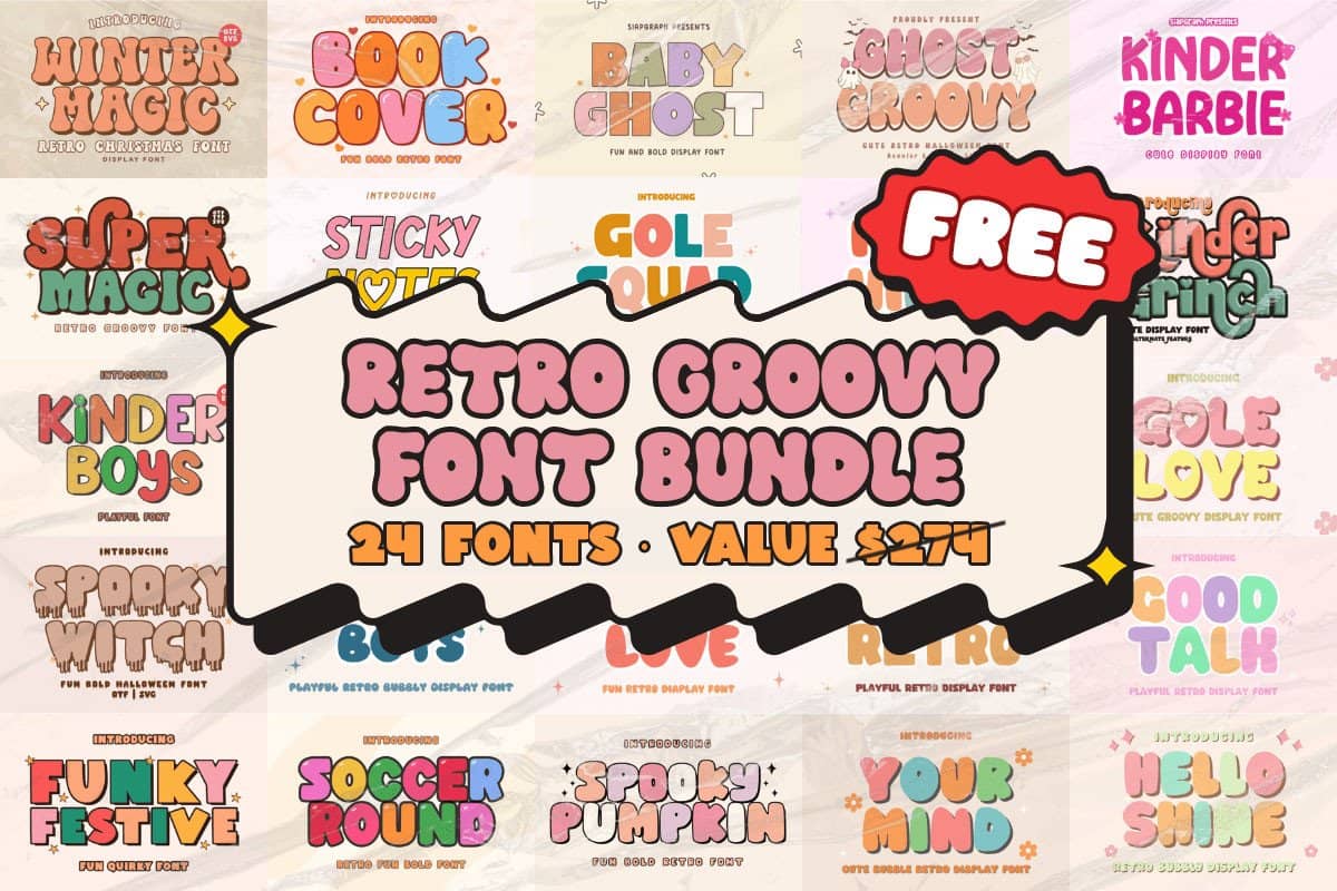 βFREE – Retro Groovy Font Bundleβ