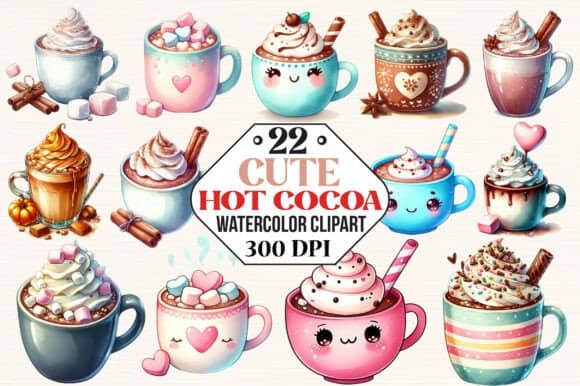 FREE – Cute Hot Cocoa Watercolor Clipart PNG