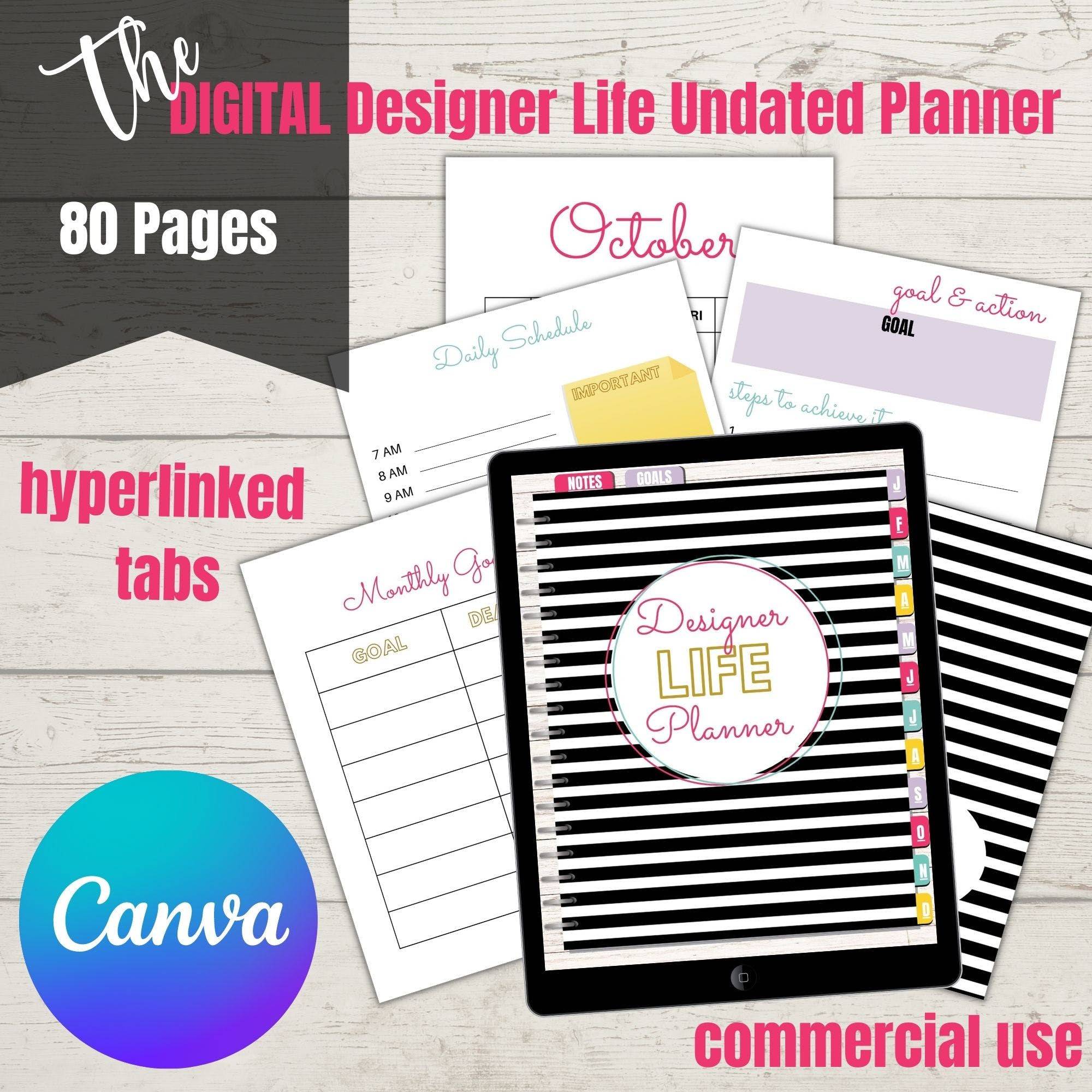 This beautiful Designer Life digital planner has everything your customers need in order to plan their lives and keep track of goals! You’ll get a fully-editable Canva template with hyperlinked pages, including: