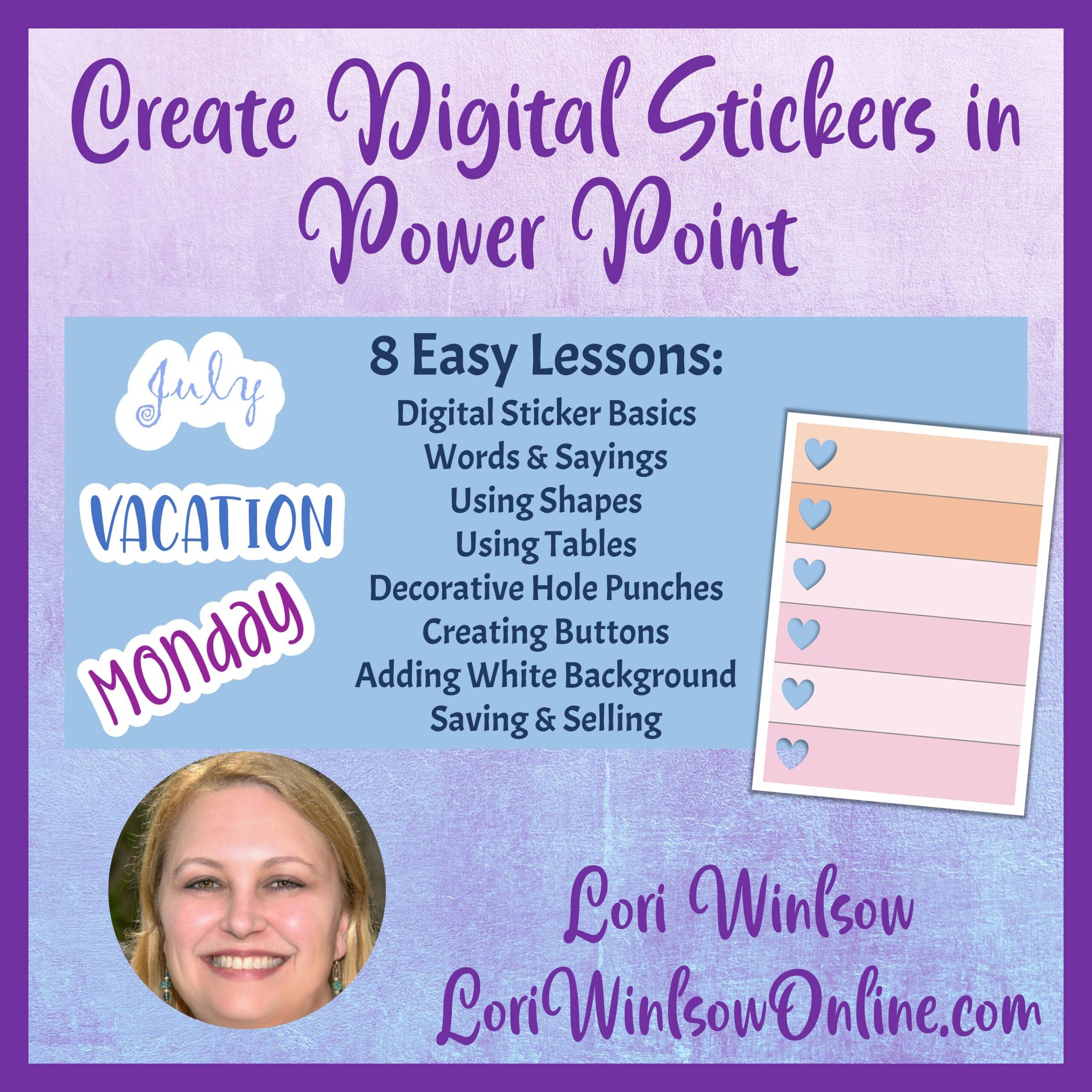 Lori Winslow from Lori Winslow online is going to help you create your own digital planner stickers in Power Point. Her course Create Digital Planner Stickers in Power Point will show you how to create your own stickers that are commonly used in digital planners. Easy to follow step-by-step video instructions to create word based stickers, add fancy hole punches and how to save the images to sell to the end user.