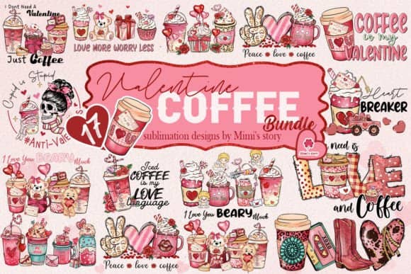 Coffee Valentine’s Day PNG Bundle