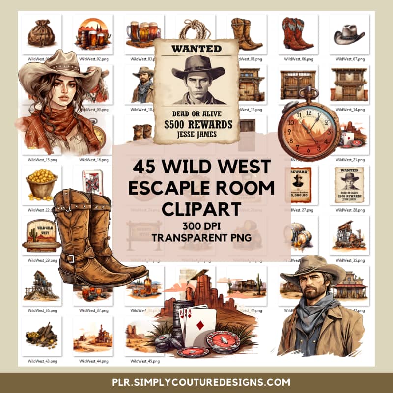 Wild West Escape Room Clipart Pack: Bring the untamed Wild West to life in your printables.