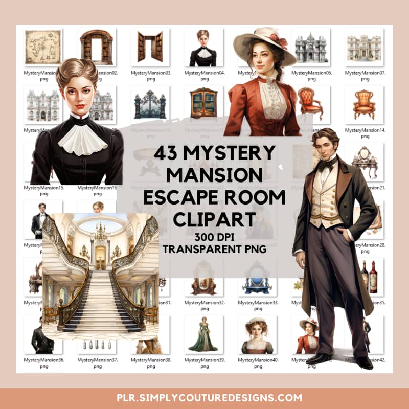 Mystery Mansion Escape Room Clipart Pack: Create suspense in a grand mansion setting.